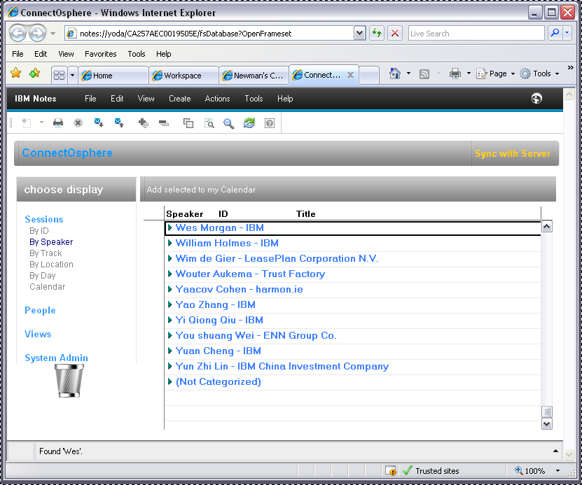 And if you open a standard Notes application, you get the older style Notes interface (frameset/pages/outlines/etc) displayed nicely in a browser.