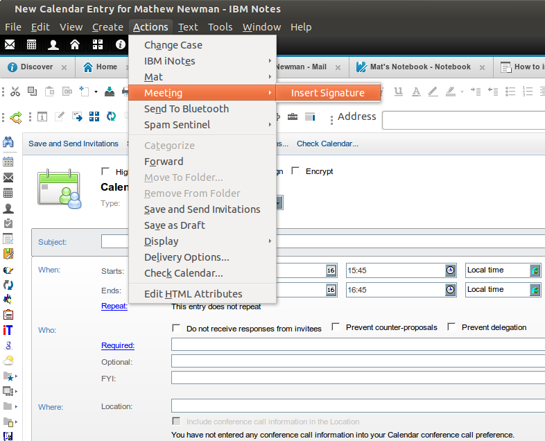 How to insert your mail signature in a Lotus Notes meeting invitation