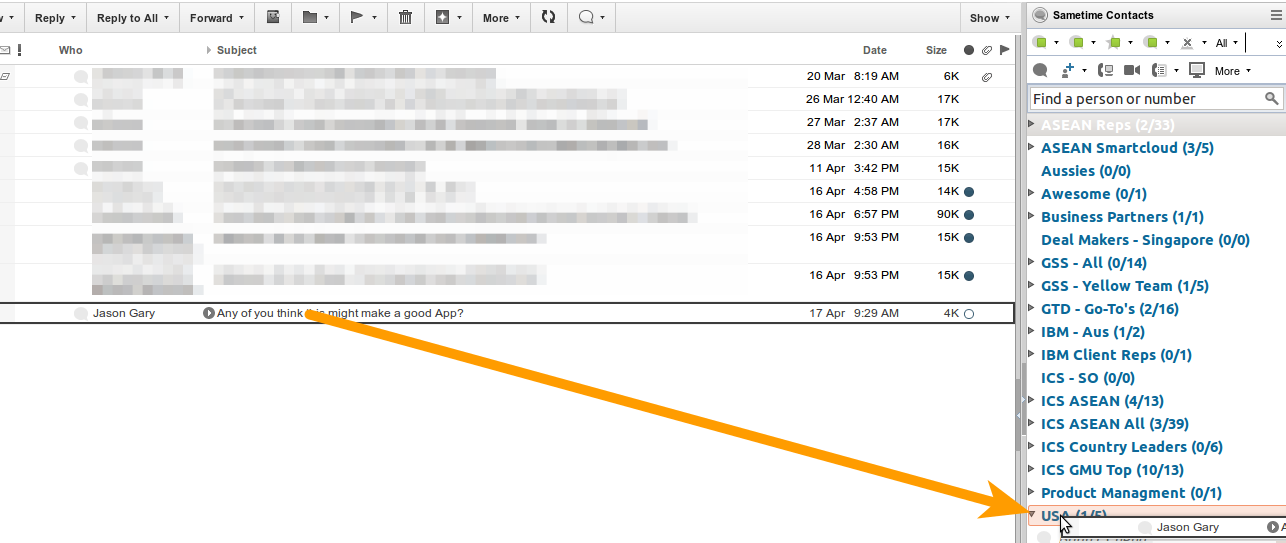 Figure 1: Drag an Email onto a Sametime Contact Group