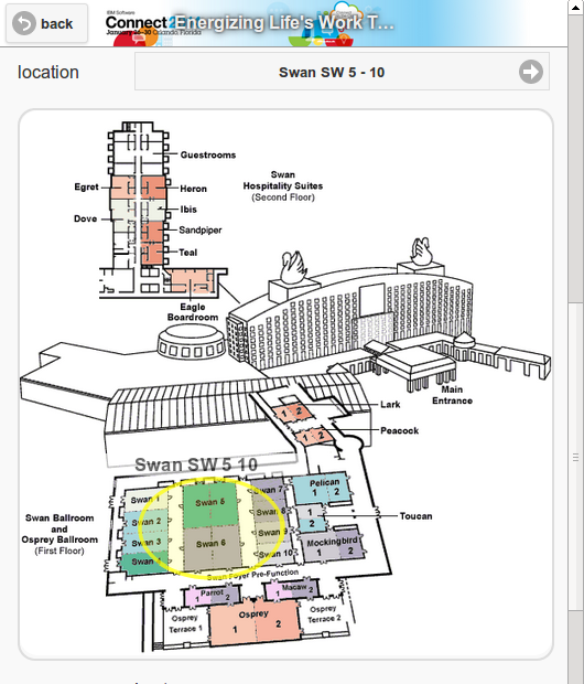 One of the features I really love about this app is the integration with a venue map to show you exactly WHERE that session you're looking for has gone to.