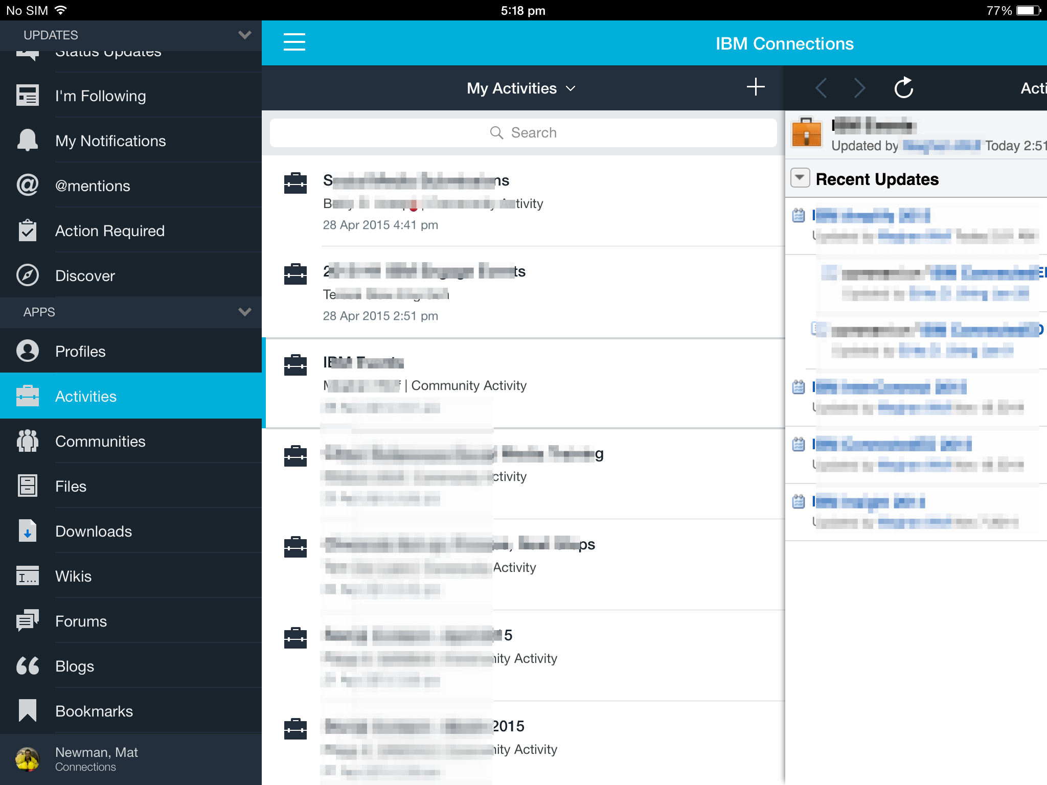 FIGURE 1: IBM Connections Activities on Mobile